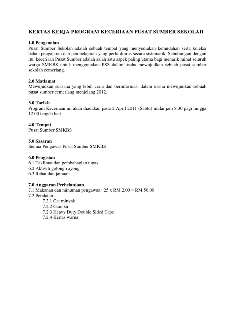 Contoh Kertas Kerja Program Gotong Royong Sekolah Pdf